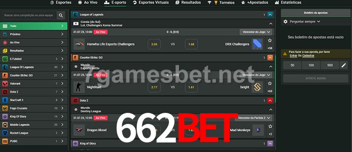 A aposta 662bet oferece aos jogadores a experiência mais conveniente de apostas em eSports!